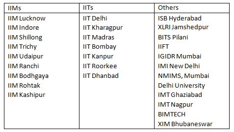 List of reputed institutions whose doctoral students and faculty have attended the Summer School