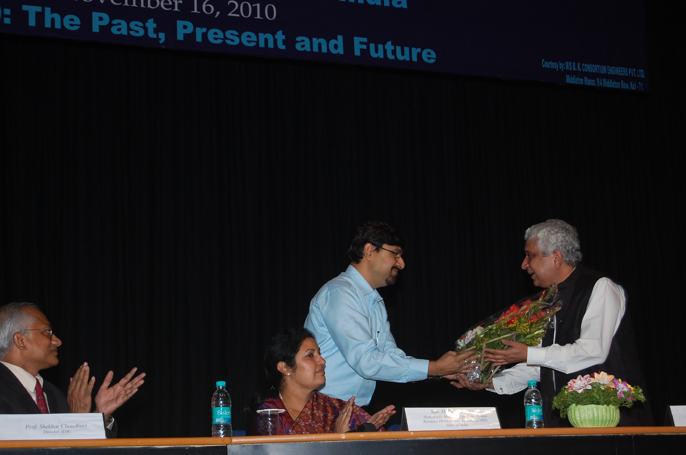 Mr Moloy Pakre being felicitated on his 25th year of service with the Institute by Prof Sahadeb Sarkar, Director-in-Charge, IIM Calcutta