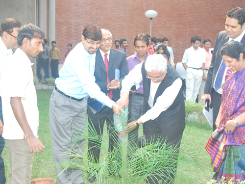 Mr Moloy Pakre being felicitated on his 25th year of service with the Institute by Prof Sahadeb Sarkar, Director-in-Charge, IIM Calcutta