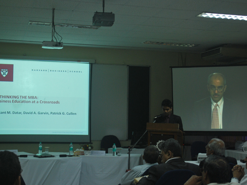 Prof Balram Avittathur being felicitated on his 25th year of service with the Institute by Prof Sahadeb Sarkar, Director-in-Charge, IIM Calcutta