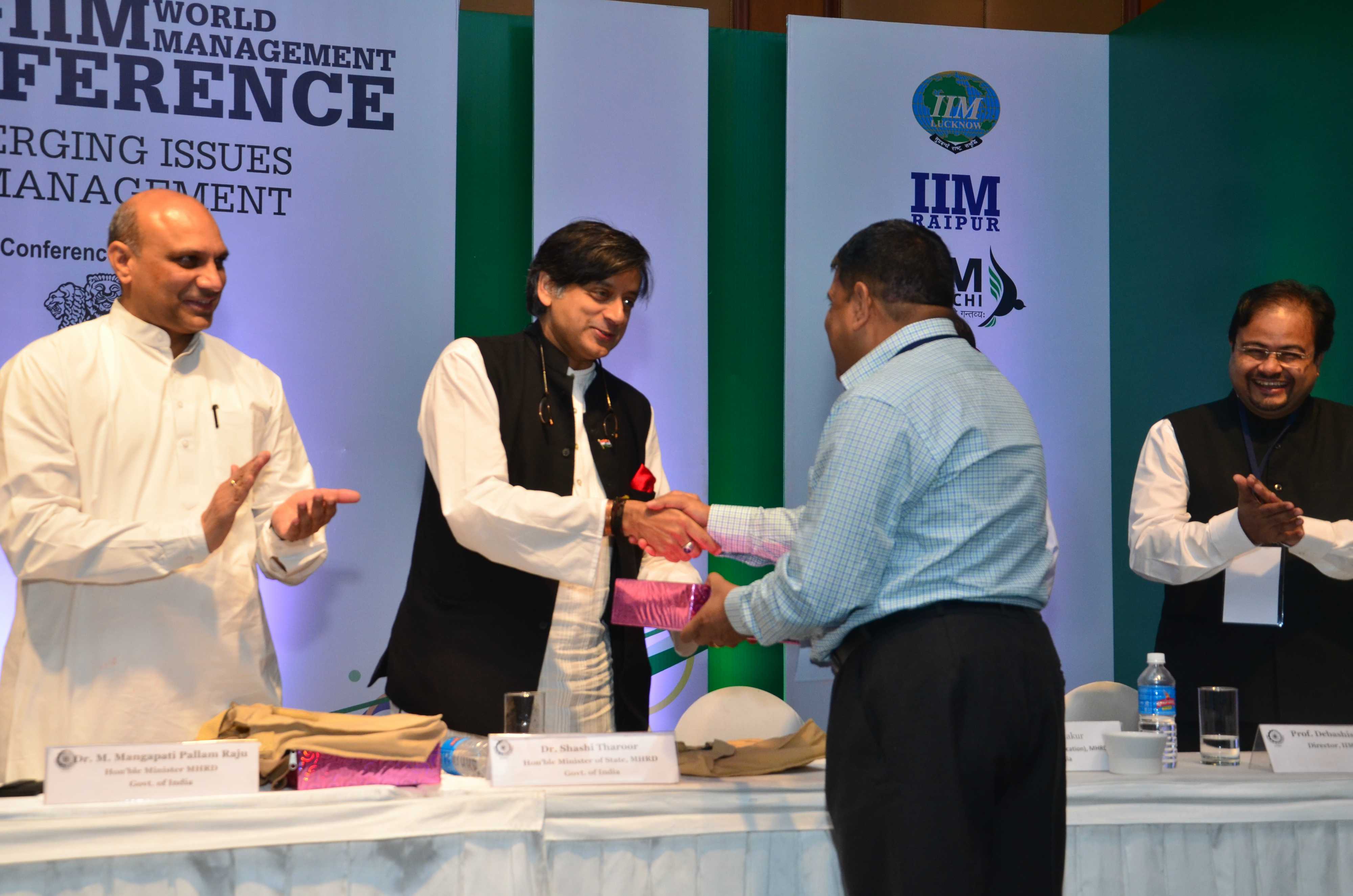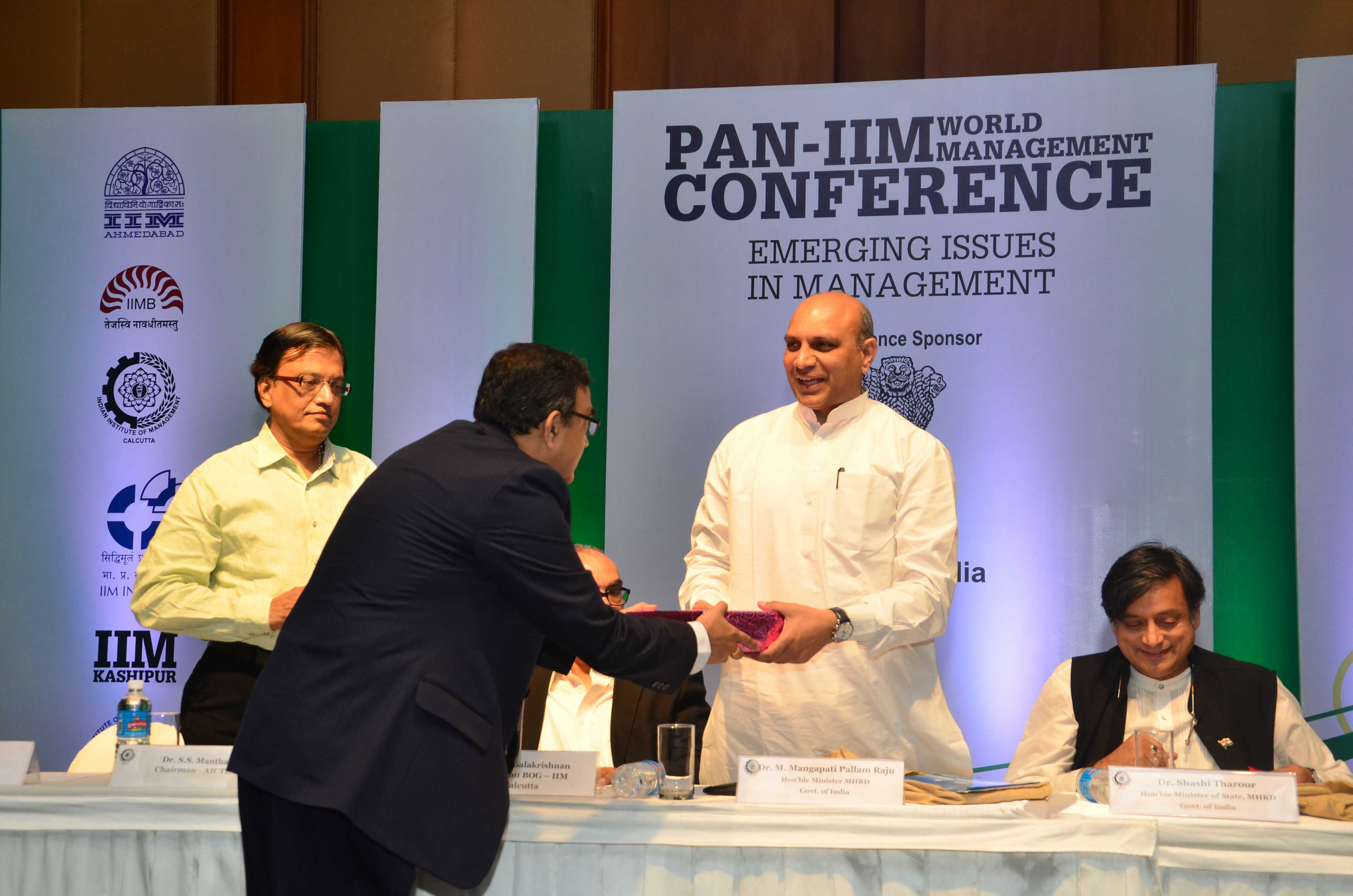 Prof Balram Avittathur being felicitated on his 25th year of service with the Institute by Prof Sahadeb Sarkar, Director-in-Charge, IIM Calcutta