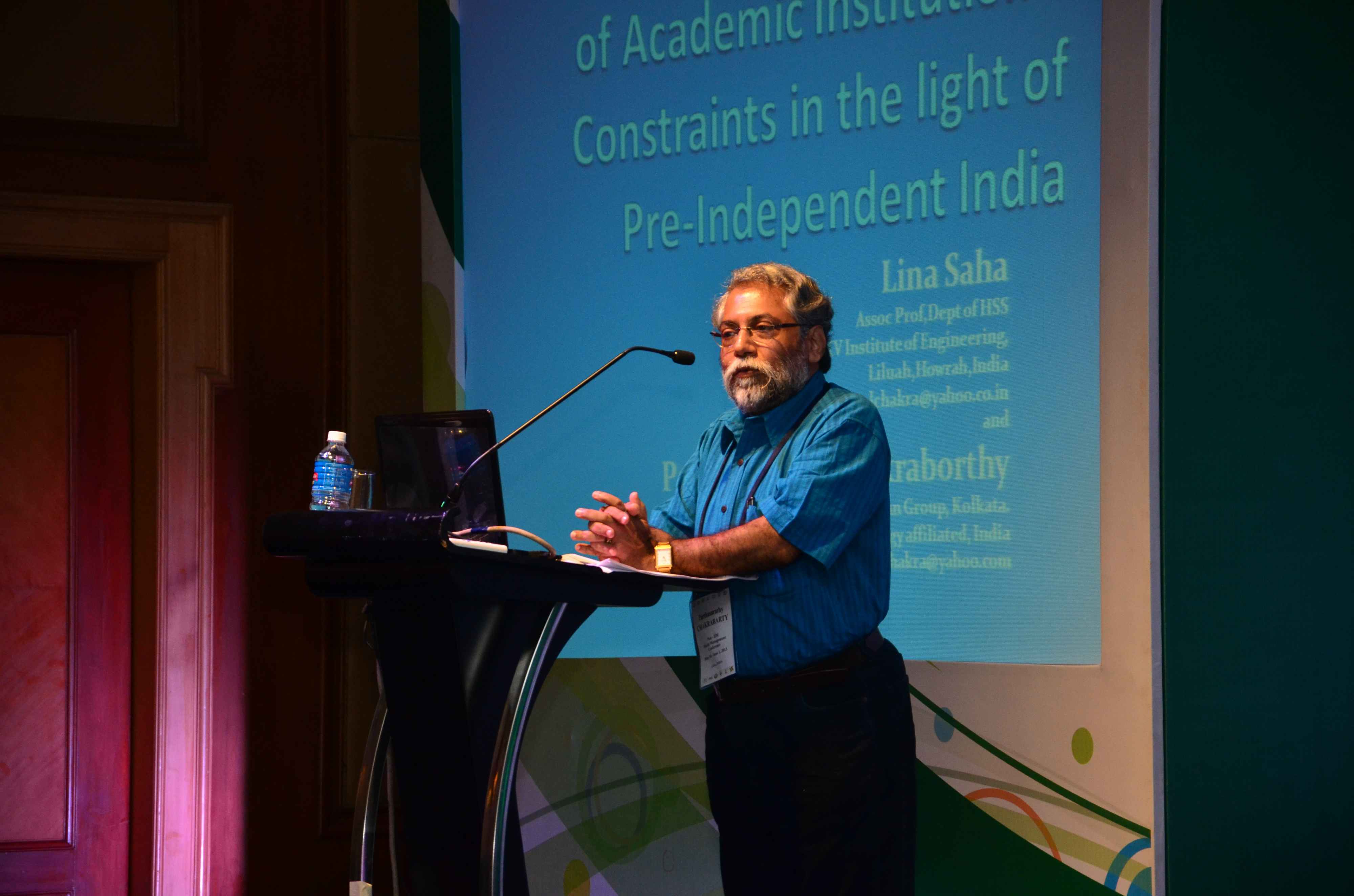 Mr Moloy Pakre being felicitated on his 25th year of service with the Institute by Prof Sahadeb Sarkar, Director-in-Charge, IIM Calcutta