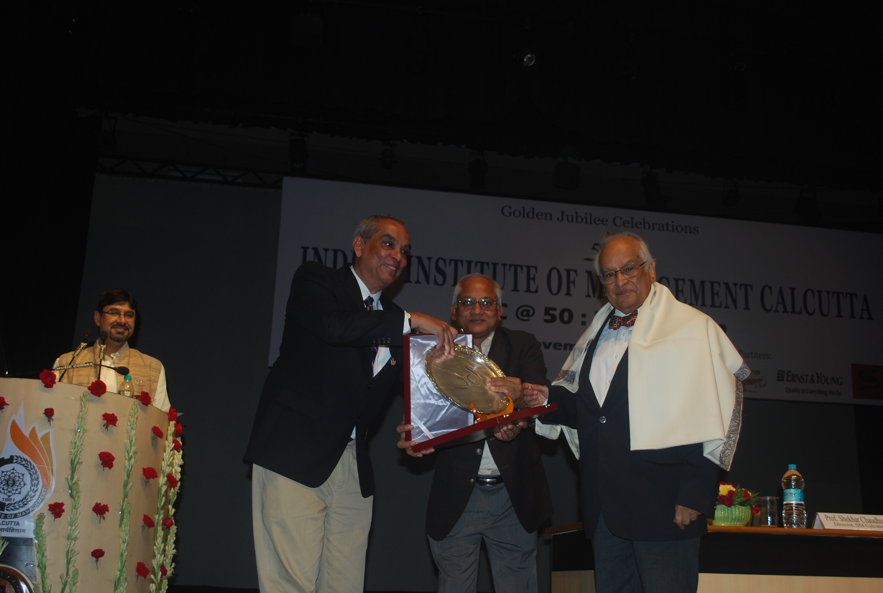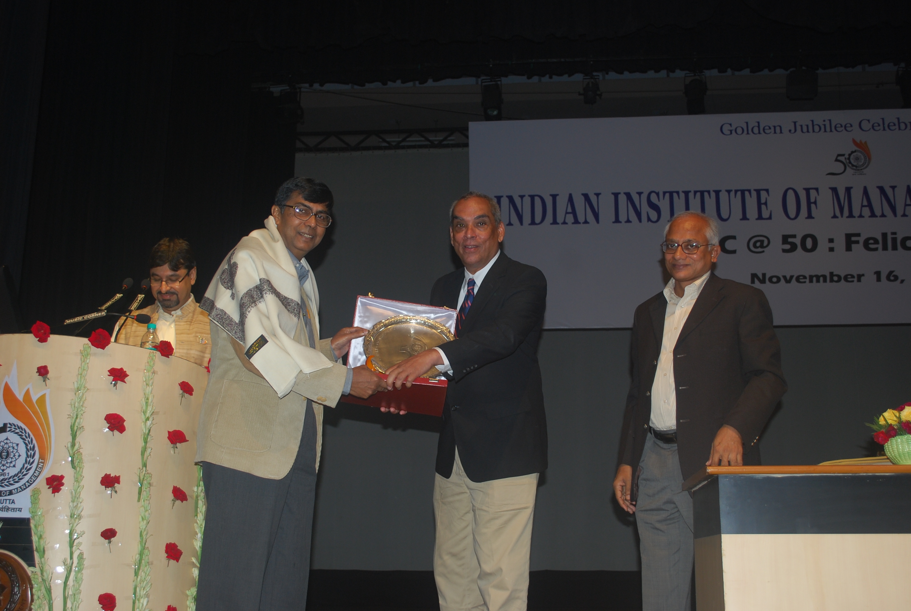 Mr Moloy Pakre being felicitated on his 25th year of service with the Institute by Prof Sahadeb Sarkar, Director-in-Charge, IIM Calcutta
