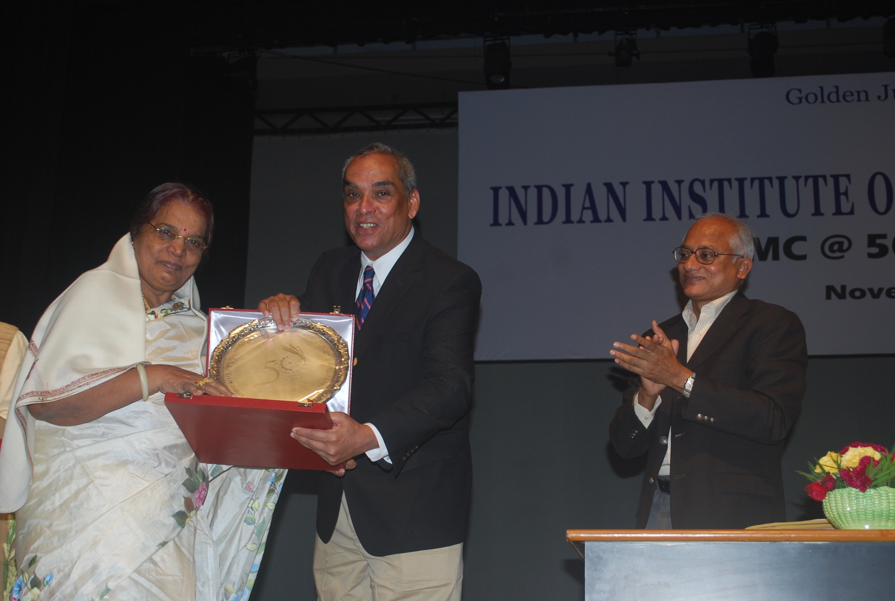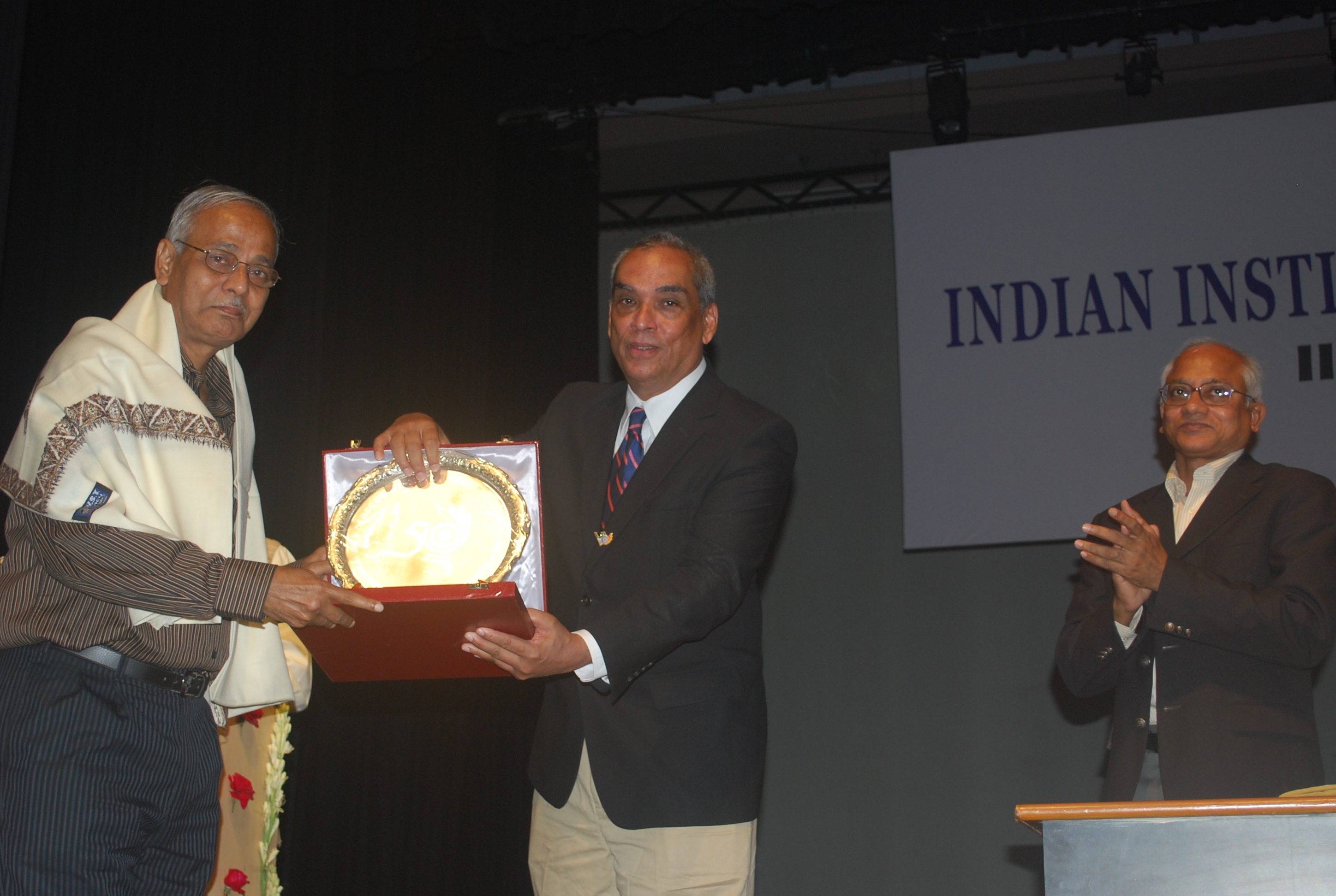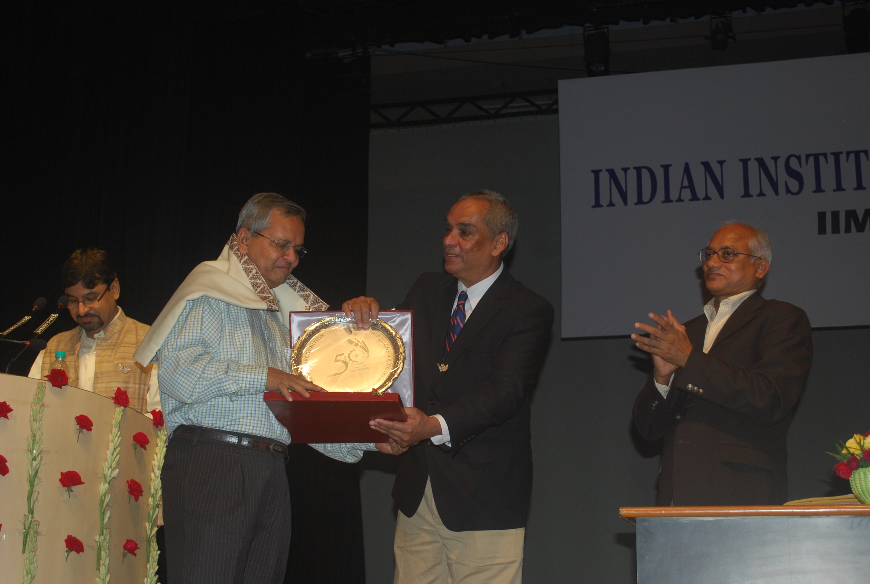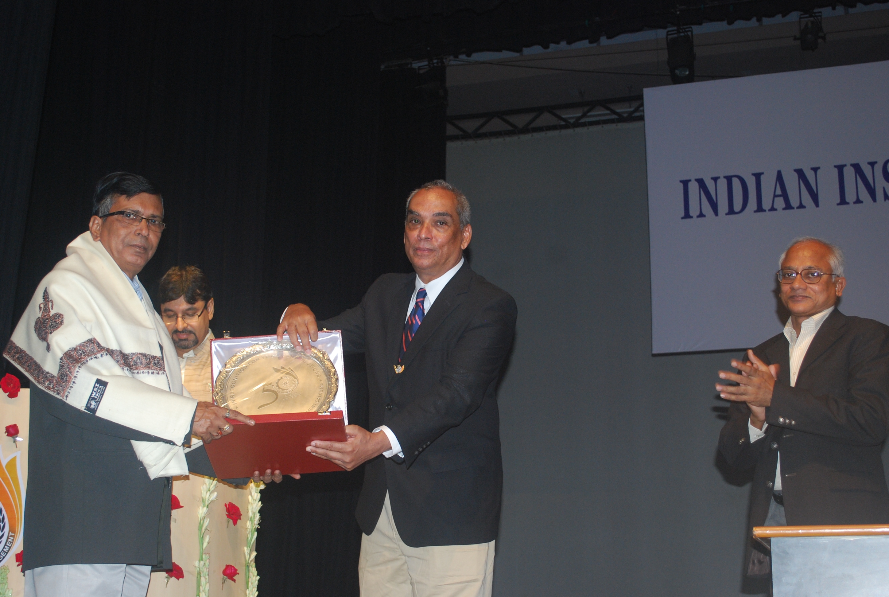 Mr Moloy Pakre being felicitated on his 25th year of service with the Institute by Prof Sahadeb Sarkar, Director-in-Charge, IIM Calcutta