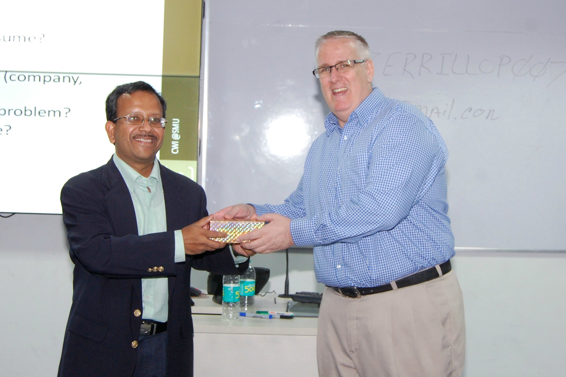 Mr Moloy Pakre being felicitated on his 25th year of service with the Institute by Prof Sahadeb Sarkar, Director-in-Charge, IIM Calcutta