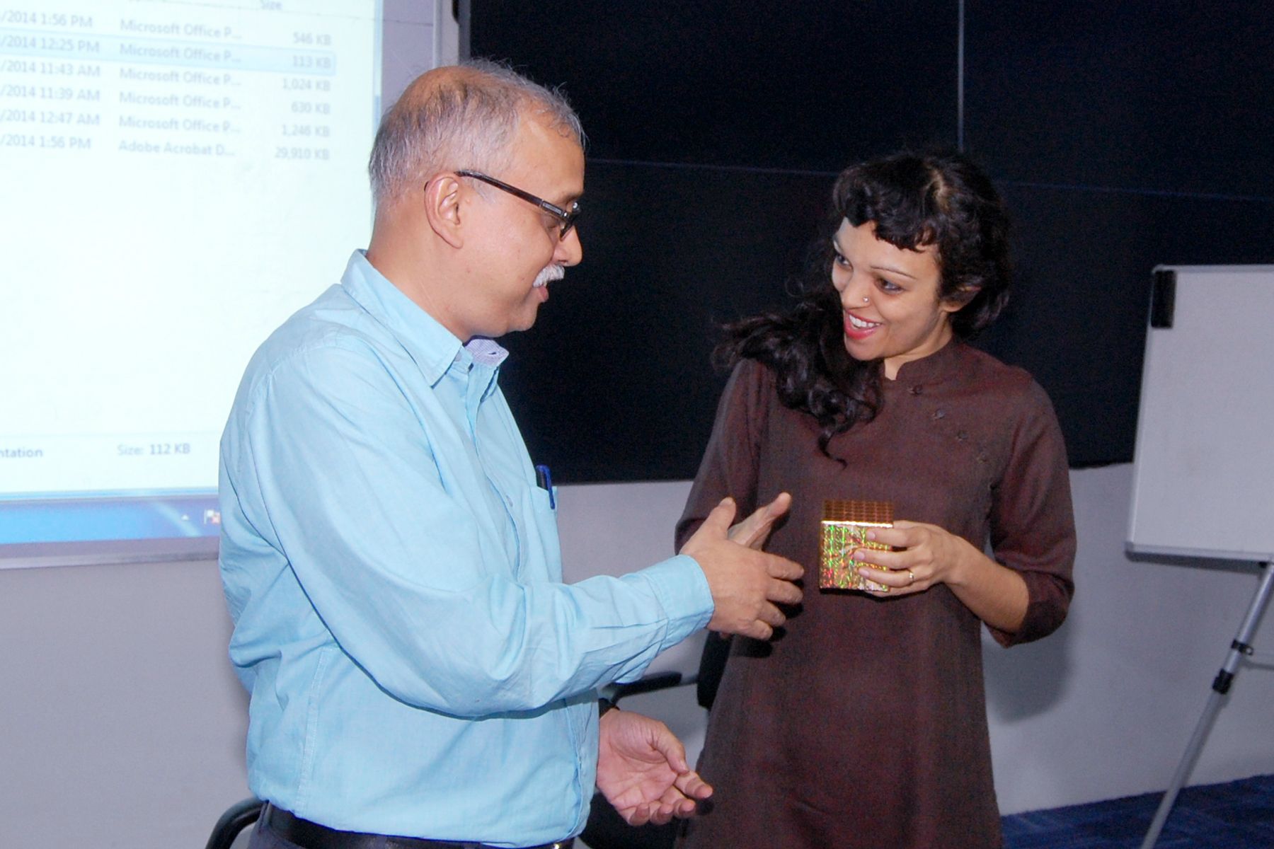 Mr Moloy Pakre being felicitated on his 25th year of service with the Institute by Prof Sahadeb Sarkar, Director-in-Charge, IIM Calcutta